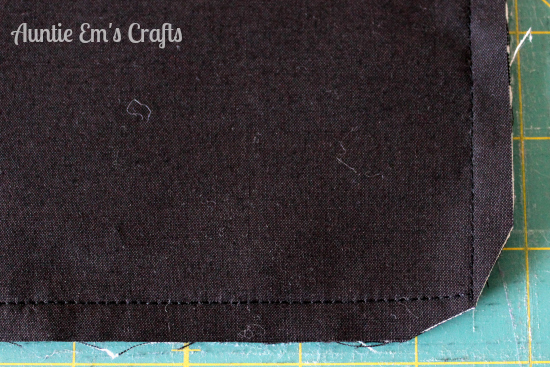 Make two cuts in each corner to remove excess fabric. This helps give a nicer looking corner when you flip it right side out. Be careful not to cut through your stitches.