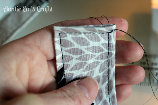 Before you sew the straps shut, fold under each end by about 1/4″.